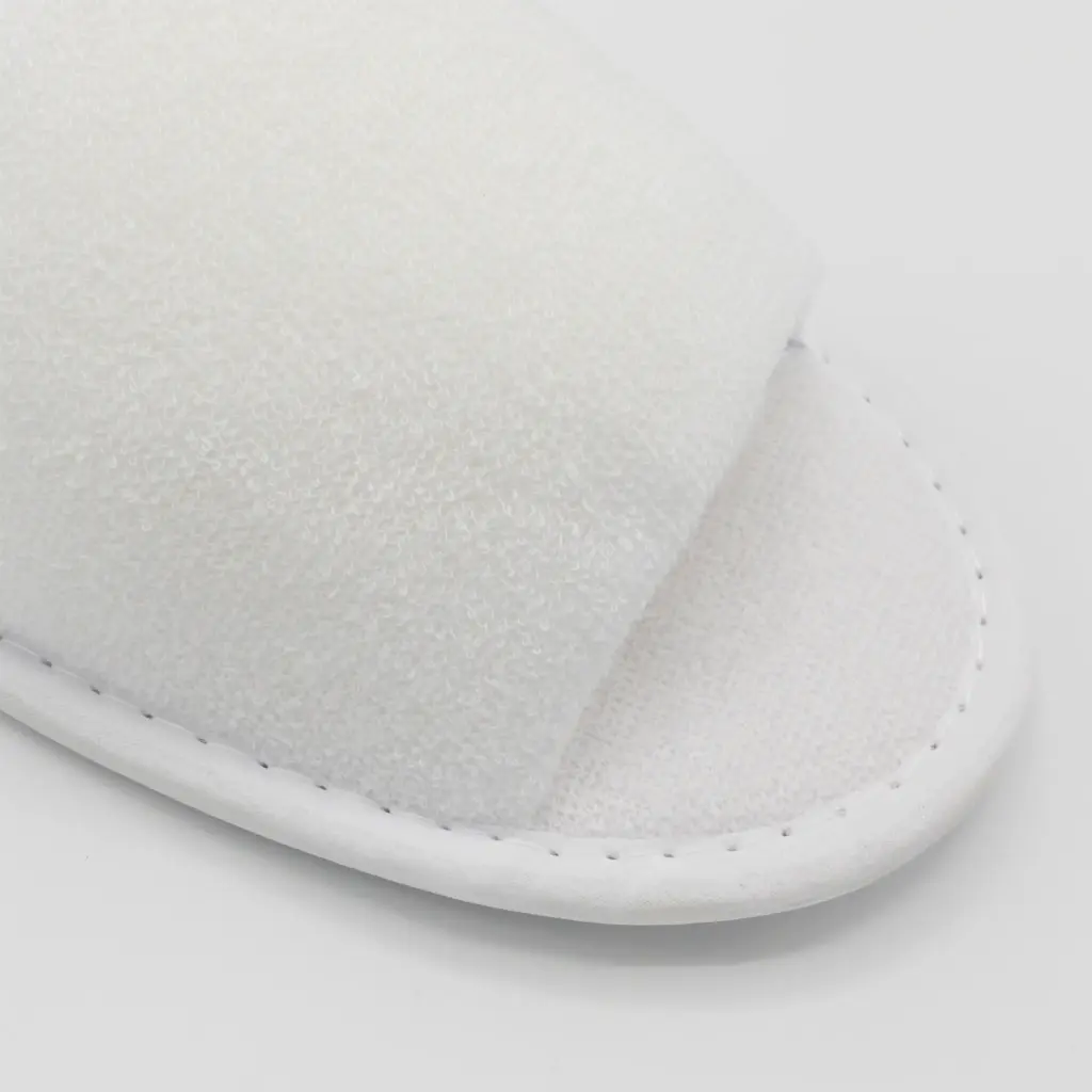 Pantofola monouso bianca a punta aperta in morbida spugna, pensata per offrire comfort e praticità nelle camere d’albergo, SPA e zone relax. Leggera ma resistente, garantisce igiene e una piacevole sensazione al contatto con la pelle.